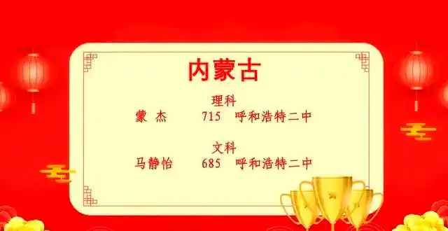 于内蒙古之地,呼和浩特二中变身为最大赢家,不但将文理状元统统收入囊中,理科方面更是出现了马静怡(685分)以及蒙杰(715分)这两位同学同时把状元桂冠摘取的情形。山西大学附属中学同样具雄厚实力,宁瑞懿凭借703的分数夺得理科状元,李昳萱以655分的成绩拿下文科第一。黑龙江的佳木斯一中李昀蔚理科成绩为724分,数学更是取得了满分150分;文科状元张姝雅获677分,其来自大庆实验中学。