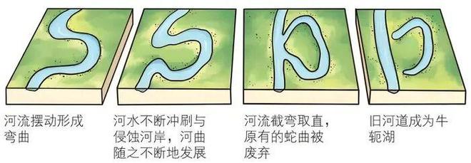 牛轭湖是河流凹凸岸极为经典的演化所产生的结果,跟随曲流不间断地进步,相邻的凹岸会和凸岸变得愈发靠近,当处于洪水期的时候,河水极有可能直接冲破狭窄的河颈,从而裁弯取直,遭到废弃的旧河道两端会渐渐被淤塞,进而形成样子如同牛轭的湖泊,像长江中下游的洞庭湖、鄱阳湖便是如此形成的。