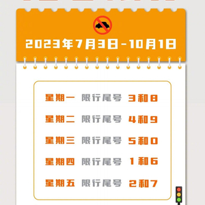 自7月3日,也就是这个周一起始,限行尾号正式步入新一轮的轮换。在周一至周五期间,每天限行的尾号依次是3和8、4和9、5和0、1和6、2和7。
