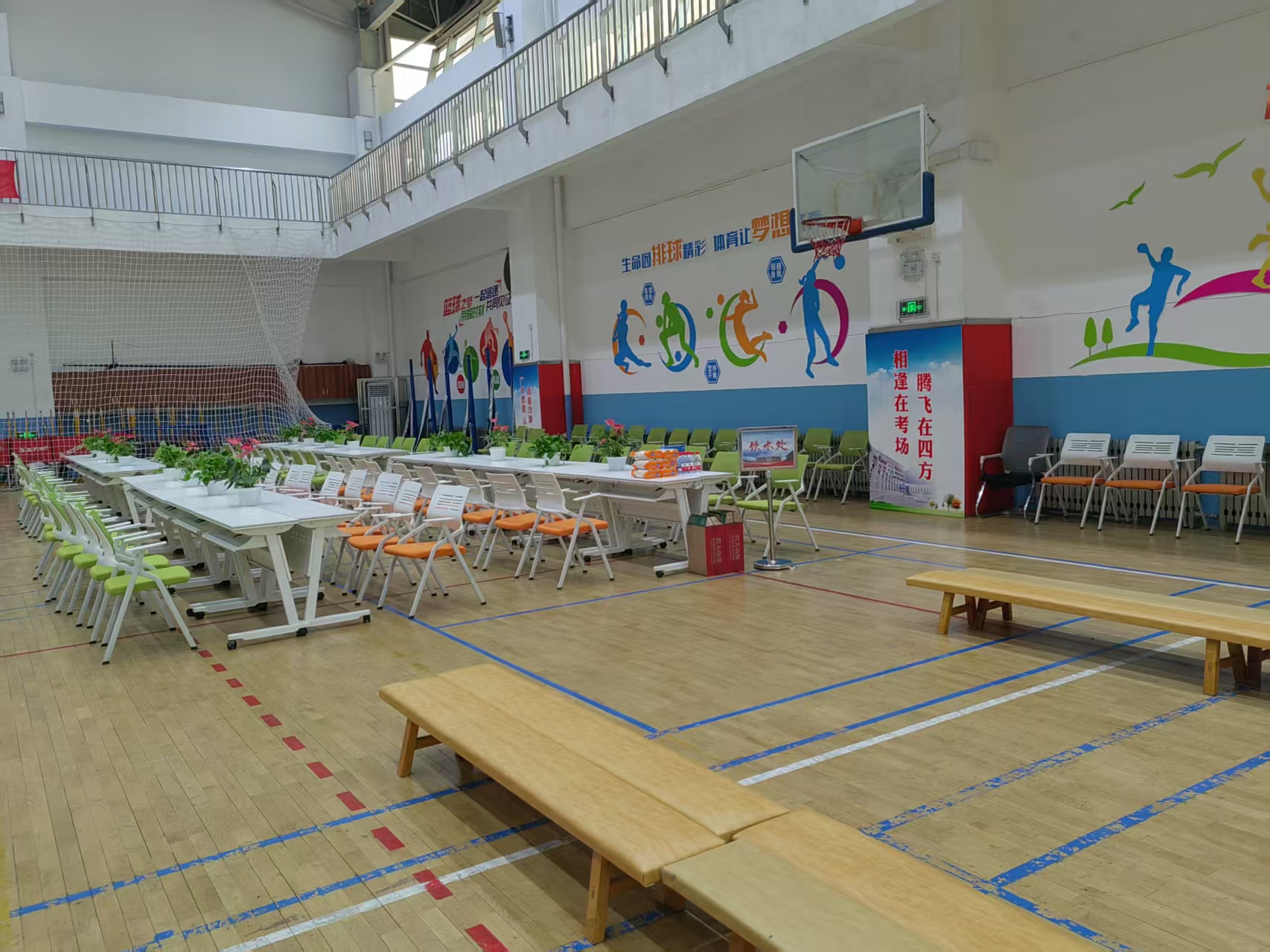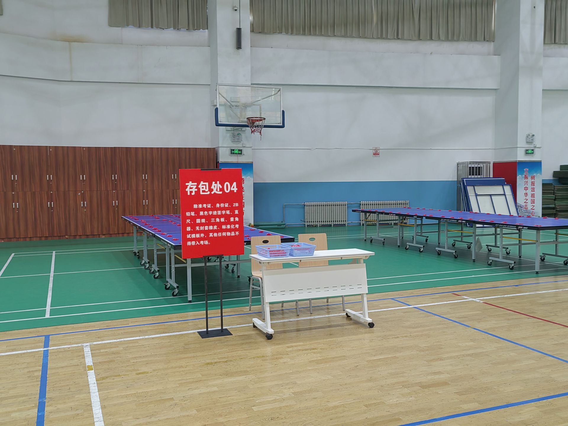 考点内部,分区是明确的,入口那里,设置了5组存包柜,每组呢,有着20个储物格。休息区域,摆放了30套桌椅,桌子上面,放置着小盆绿植,其中大多是绿萝以及多肉植物。有几位提前前来查看考场的考生,正坐在椅子上翻看笔记,他们的表情,都是比较放松的。学校另外还准备了饮水机,并且还提供一次性纸杯。