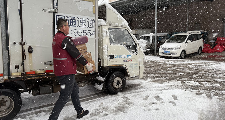 于陕西省商洛市那儿,快递员们迎着大风冒着大雪,穿梭在街巷当中。这般看似普通平常的坚守,不但保证了快递业务服务的顺畅通行,还为处于风雪里的城市以及乡村送去了一份切切实实能感受到的温暖。并且将人与人之间的需求给联系起来了。