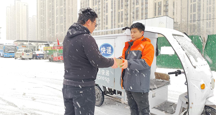 当城市被风雪所覆盖之时,快递员们就化身为城市里那格外温暖的“摆渡人” ,于河南省郑州市,快递员们不畏惧严寒天气以及道路湿滑状况,始终坚定地坚守在配送的最前线 ,他们的身影在风雪里面不停地穿梭着 ,竭尽全力去保障快件能及时送达目的地 ,为千家万户送去迫切所需的各种物资。