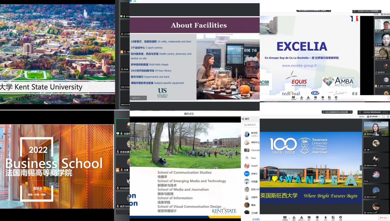5月17日起,至20日结束,英国萨塞克斯大学、美国肯特州立大学、法国南锡高等商学院等合作院校的中国区主管纷纷抵达。他们面向教育类、口译、传媒、艺术、管理等不同专业的学生,开展了10场专场介绍。内容涵盖学校概况至奖学金,甚至细致到食宿如何安排。