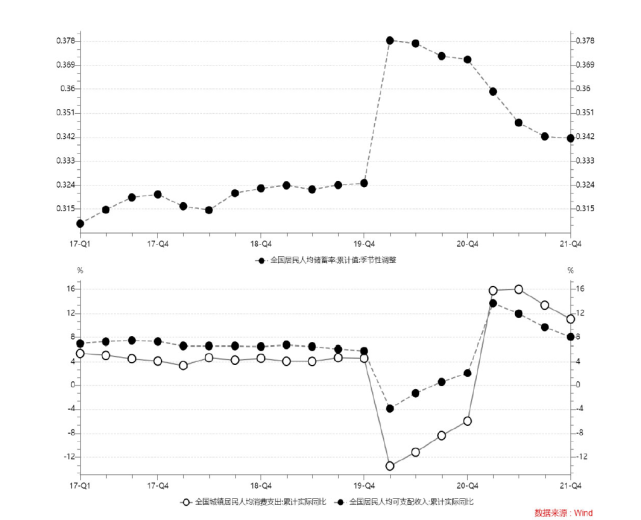 数据表明,在2020年的时候,居民消费的下降程度超出了可支配收入的下降程度,这种情况意味着人们不但没有钱去花费,更是内心存有顾虑而不敢进行消费,自2019年四季度往后,城镇人均可支配收入呈现出大幅下滑的态势,此情形直接致使家庭消费支出跟着减少。