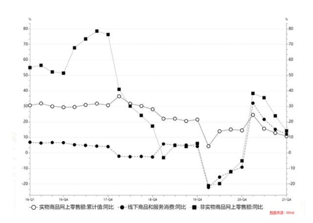 预防性储蓄成了抑制消费的关键要素,鉴于疫情再度来袭的风险一直存在,收入的不确定性使得居民握紧了钱袋子。就分类型而言,服务消费以及线下实物消费受到的冲击最为严重,然而网购等线上消费依旧维持了活力。