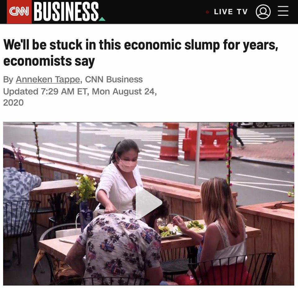 据美国有线电视新闻网报道,有经济学家宣称,美国经济处于低迷状态,这种低迷状况将会持续数年。鉴于当下经济复苏和疫情应对彼此紧密相连,此外,在今年的大选中,出现了两座相互关联的大山,一座是健康报告,另一座是财务报告,只有能够同时翻越这两座大山的候选人,才有可能入主白宫。