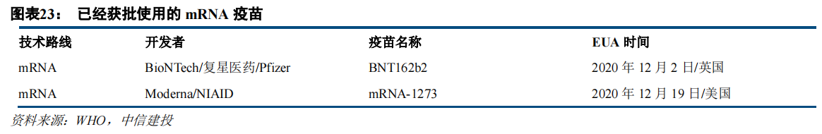 截止到二零二一年七月底,全球范围内已经有十八款mRNA新冠疫苗去到临床试验阶段,辉瑞与BioNTech联合研发的BNT162b2和莫德纳公司的mRNA-1273率先达成目标,成为最早被批准上市的产品,今年八月,BNT162b2更是得到美国FDA的正式准许,成为全球首个拥有完整三期数据的新冠疫苗。