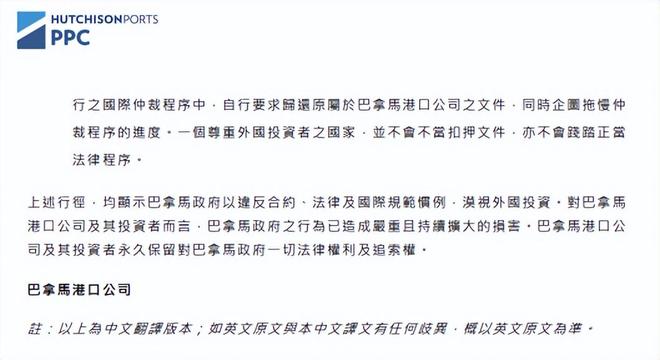 è¿ä»½å·´æ¿é©¬å½å°æ¶é´2026å¹´3æ6æ¥åå¸ç声æè¿å¼ºè°ï¼PPCä¸é¿åå°å¯¸æ¥ä¸è®©ï¼äº¦éä» å¯»æ±è±¡å¾æ§è¡¥å¿ï¼èæ¯å°±å·´æ¿é©¬æ¿åºä¸¥éè¿çº¦ååæèµè è¡ä¸ºï¼å ¨æ°è¿½ç´¢å ¶åºå¾çä¸åæçãå·´æ¿é©¬æ¸¯å£å ¬å¸ä¸é¿æ±åè®°å¹¶æ°¸ä¹ ä¿ç对巴æ¿é©¬æ¿åºãå ¶ä»£ç人åä»»ä½ç¬¬ä¸æ¹è¡ä½¿æææ³å¾æå©å追索æã