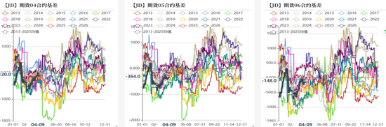 3月以来因2605合约及2606合约基差呈现缩窄趋势,主要是对换羽以及延淘压力的担忧,而2605合约仍有一定的升水空间,主要考虑到去年下半年鸡苗补栏水平较低,5月有端午节备货预期。2606合约主要是考虑到梅雨季节以及节后需求蛋鸡,加上新增产能的恢复,因此主力2606合约的升水空间较小,无论2605以及2606合约基差还在合理空间。